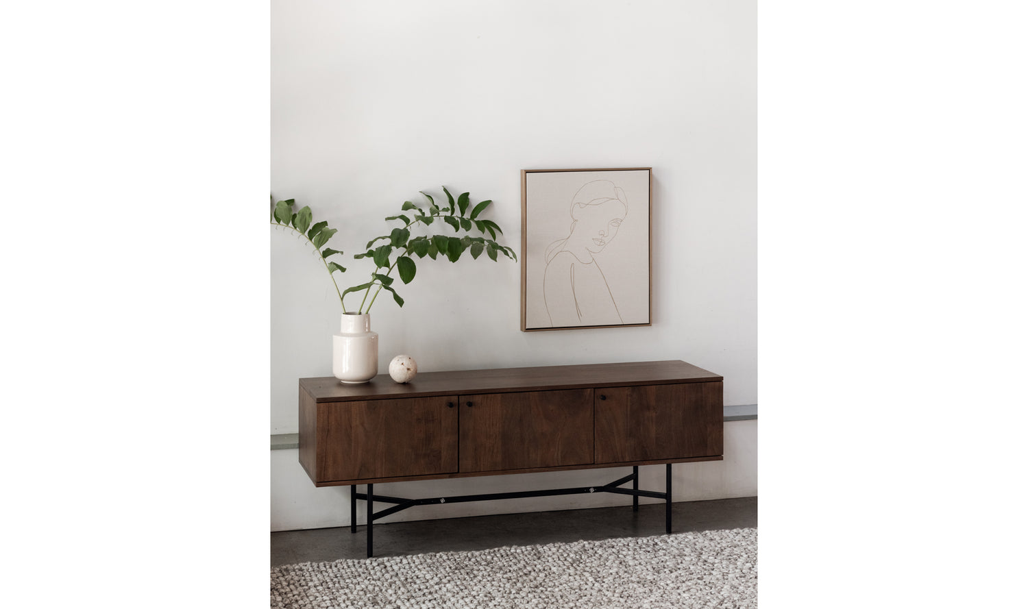 It’s all about the details with the Beck media cabinet. This entertainment console showcases a timeless modern design, crafted from solid acacia wood and complemented by industrial-inspired metal legs. Its three wide doors open to a spacious storage area, providing plenty of room for all your entertainment devices. The sleek black-powdered coat on the metal handles adds the perfect finishing touch. A blend of elegance and functionality, the Beck serves as the ideal entertainment hub for any living space.