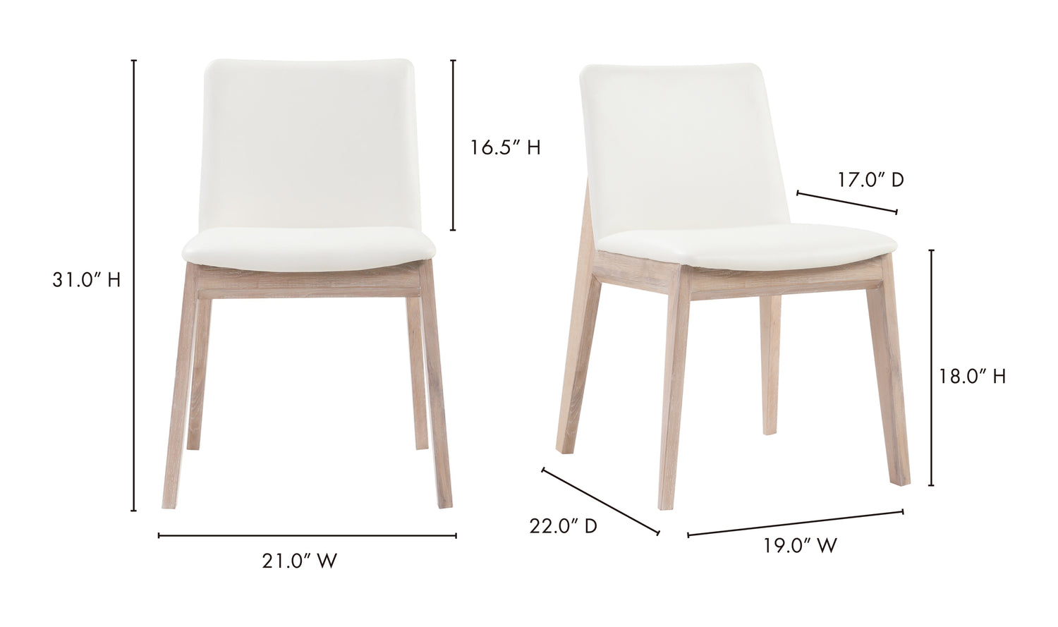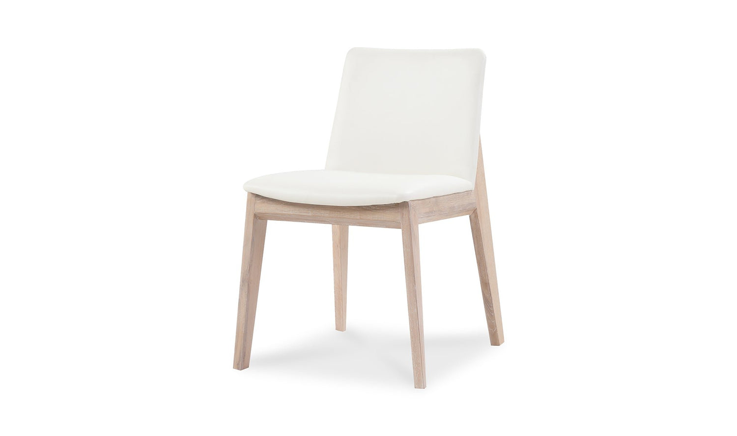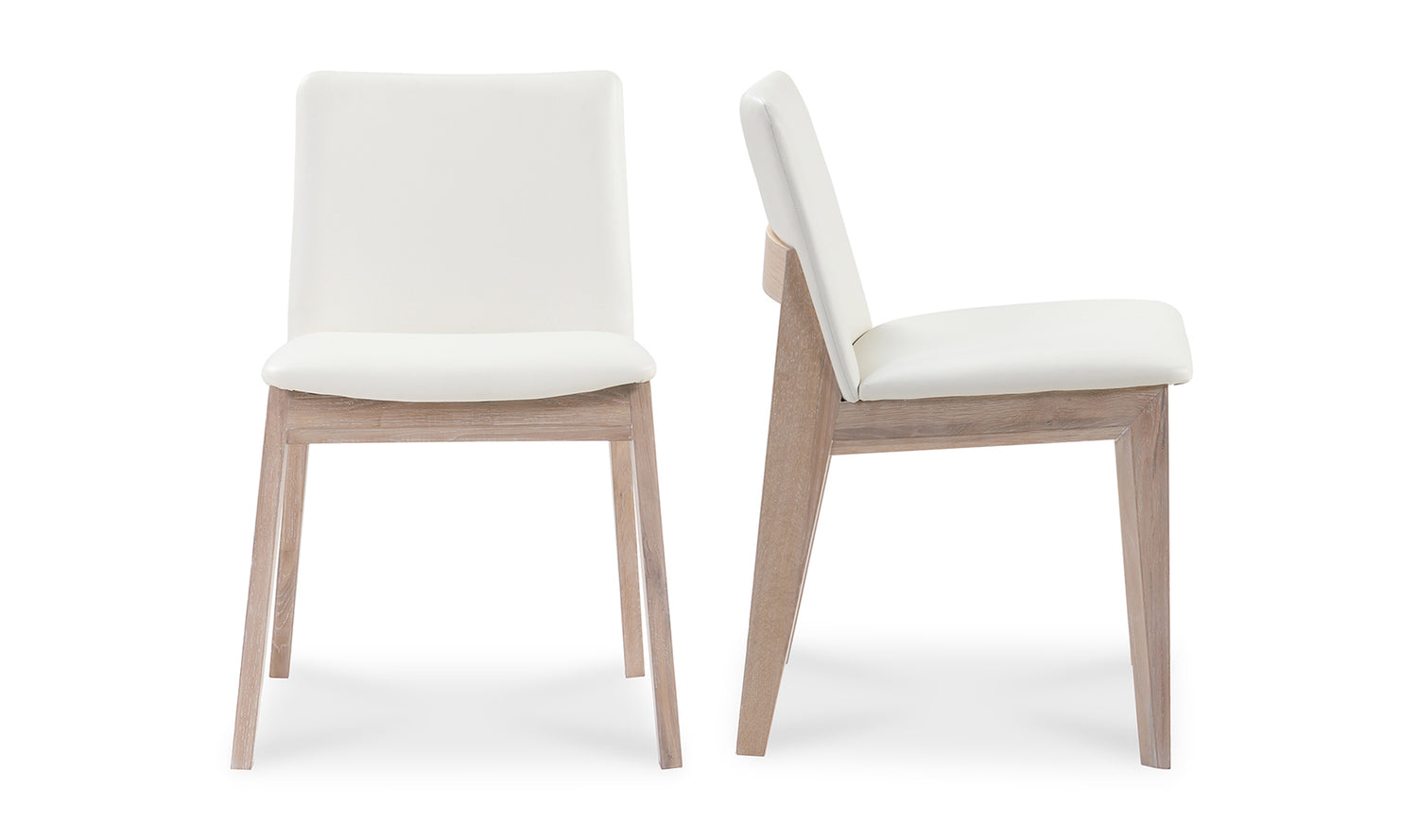 With the Deco dining chair, you'll always want to dine in. This essential piece features a solid oak frame that adds an organic touch and provides a supportive seat. Upholstered in sleek, easy-to-clean vegan leather, the Deco chair is versatile enough for both formal and casual settings.