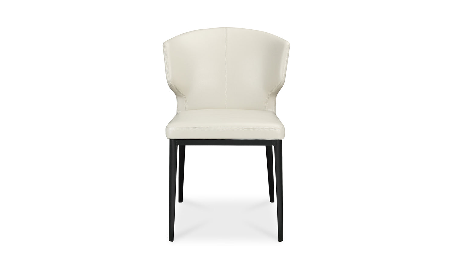 The Delaney dining chair features an hourglass silhouette that exudes Art Deco charm. This striking accent enhances the dining experience while fitting effortlessly into any decor. Upholstered in easy-to-clean vegan leather with an ultra-soft foam seat, it brings a touch of glamour without sacrificing comfort.