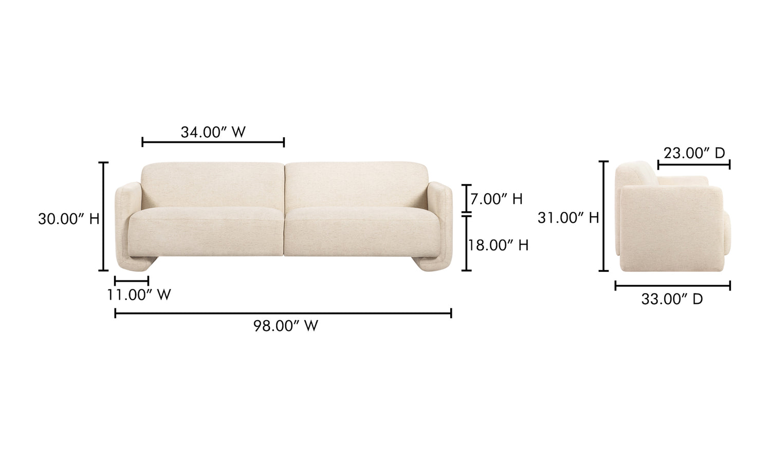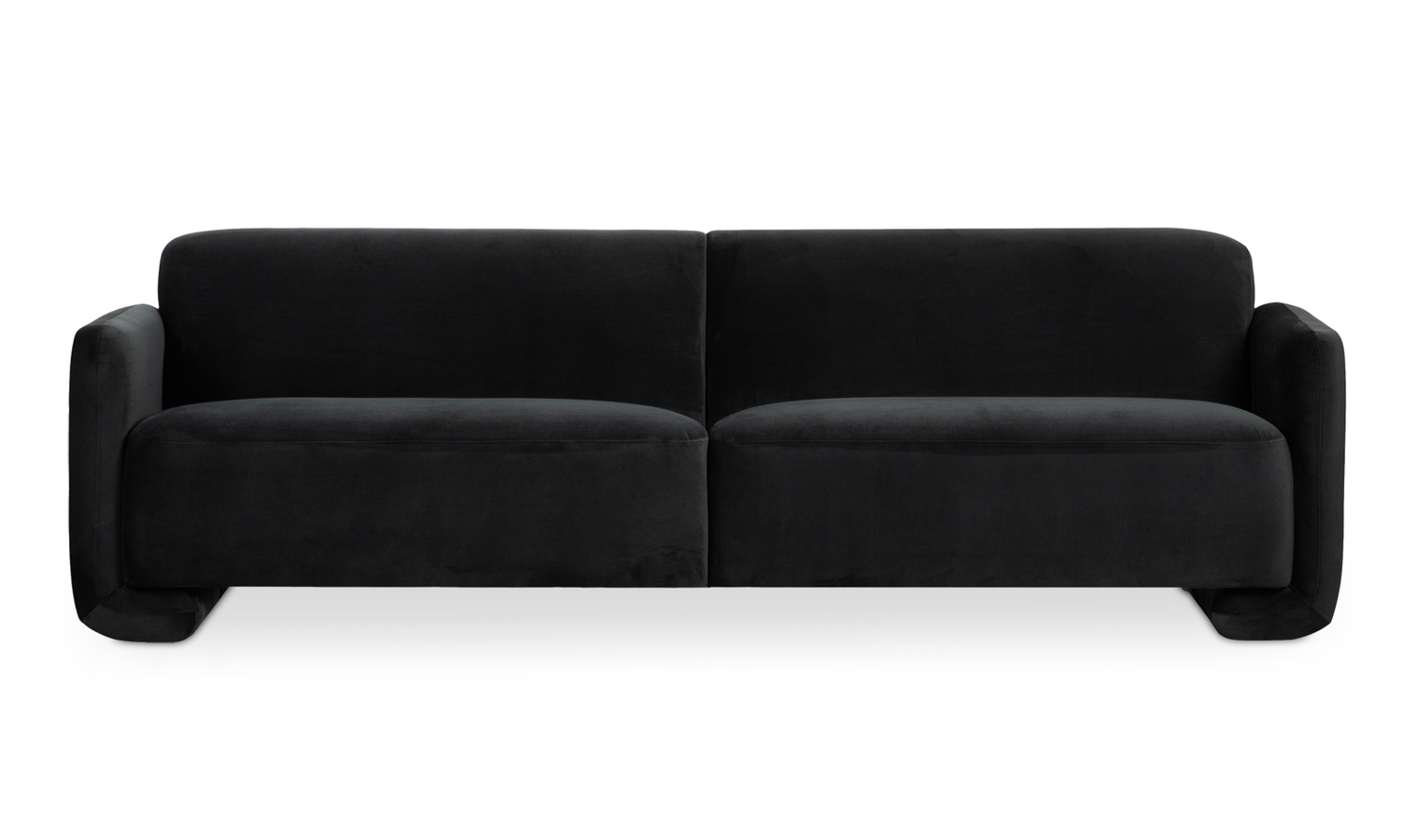 The Fallon sofa blends contemporary design with a cozy feel, offering spacious seating wrapped in soft, textured fabric that adds depth and dimension to your space. Its unique fold-under legs create a structural focal point, making it a standout piece in any living room.