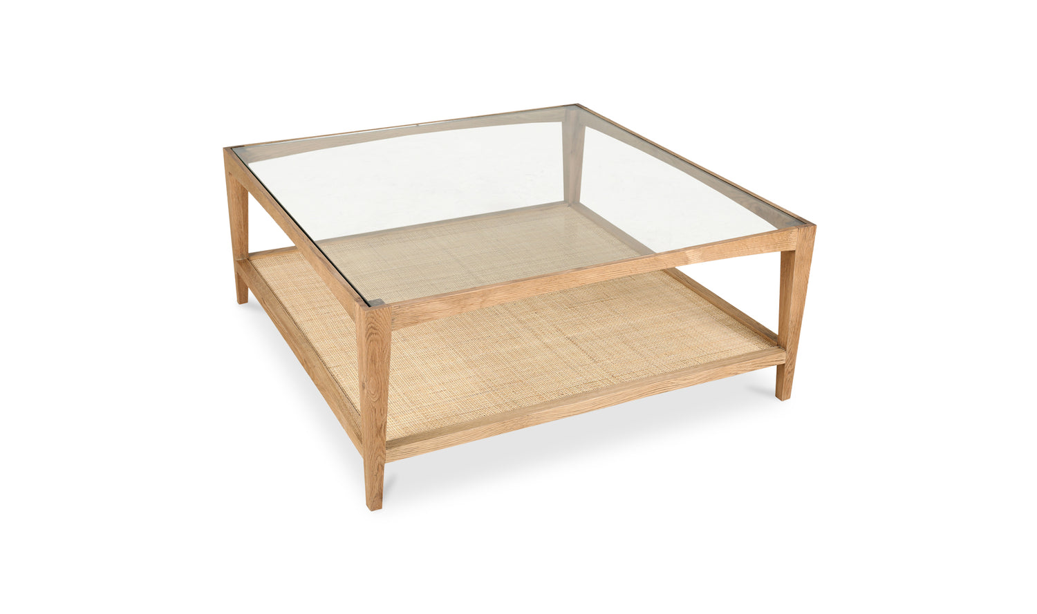 The Harrington table is the ideal addition to your space, seamlessly blending style and function. Its lower shelf is crafted from woven natural cane, while the tempered glass tabletop enhances its airy design, all supported by a beautifully sculpted solid oak frame. Available as both a coffee table and side table, you can pair them for a cohesive, all-natural look.