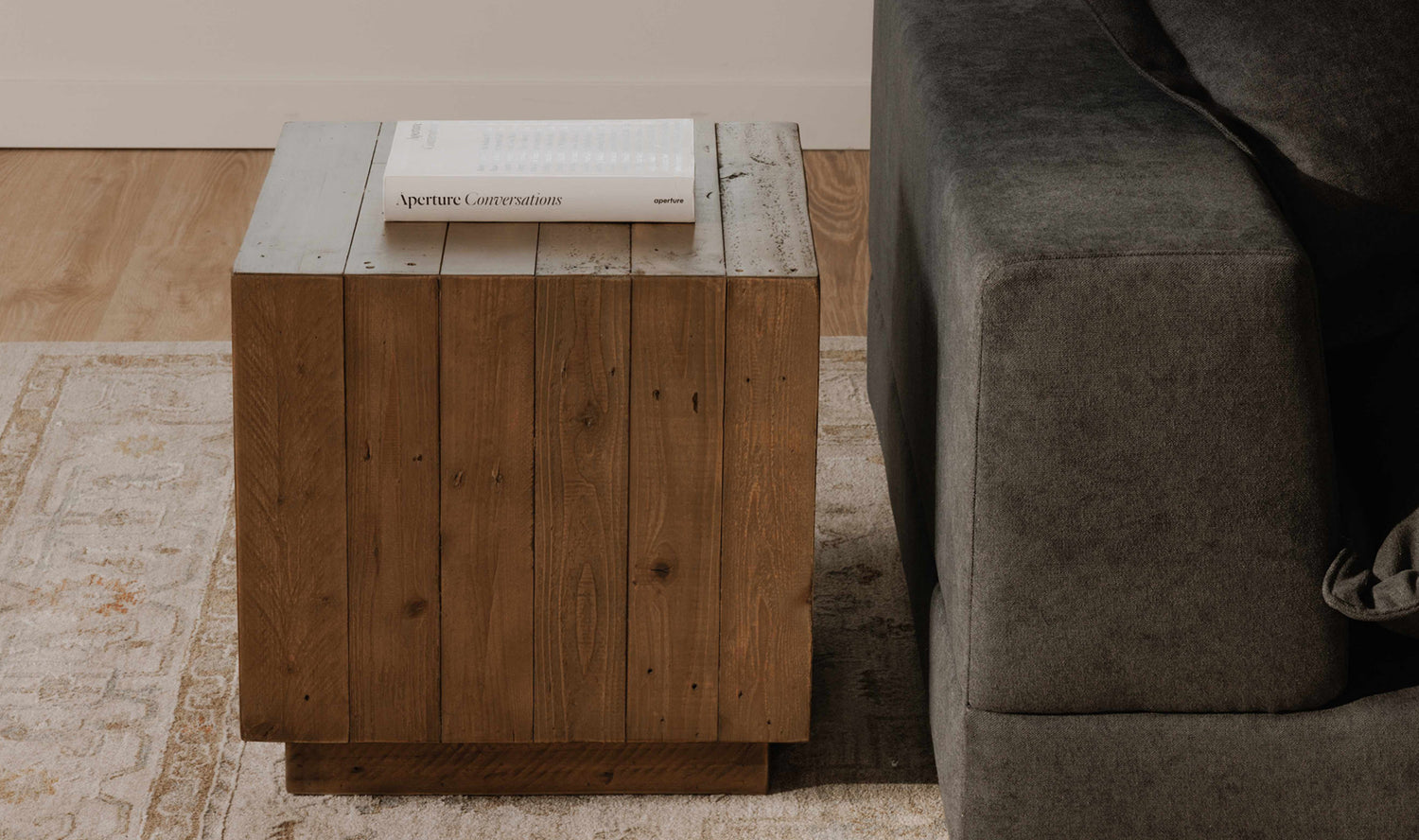 - Crafted from reclaimed pine wood with a sturdy pedestal base. Each piece is unique due to natural variations, including: