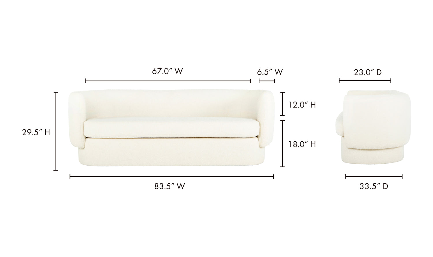 The Koba sofa offers spacious seating for four and a deeply cushioned, curved design that embodies serene, effortless style. Its clean lines, plush foam filling, and solid wood construction provide both softness and durability, making it as comfortable as it is stylish.