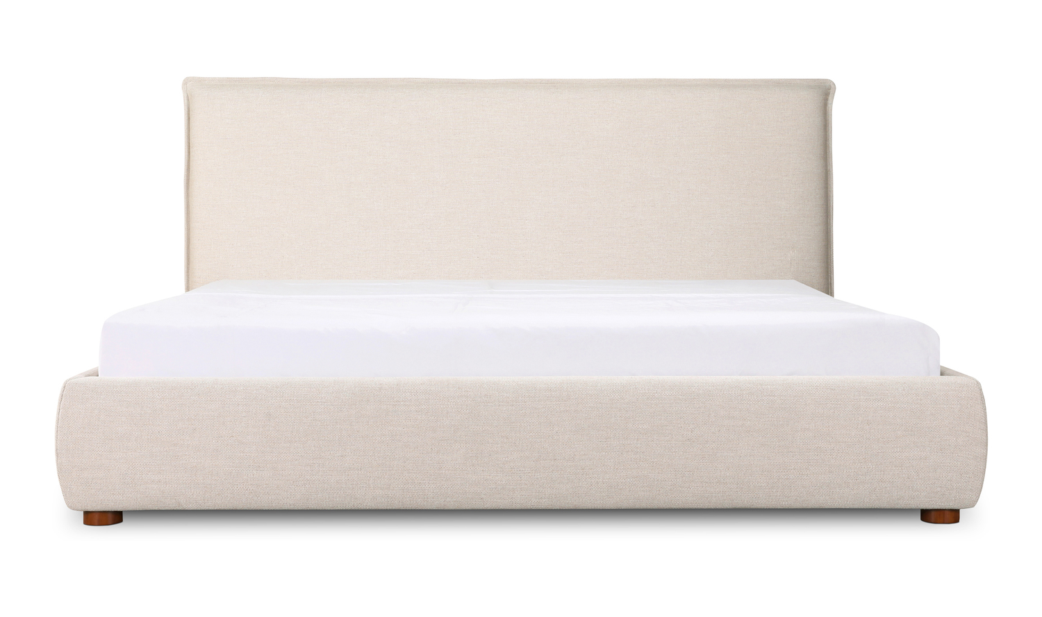 Upholstered in a soft linen-blend fabric, the Luzon bed offers a relaxed and inviting atmosphere. The padded headboard, combined with a solid pine and engineered wood frame, ensures both comfort and durability. Its timeless design and neutral tone provide a classic and practical aesthetic.