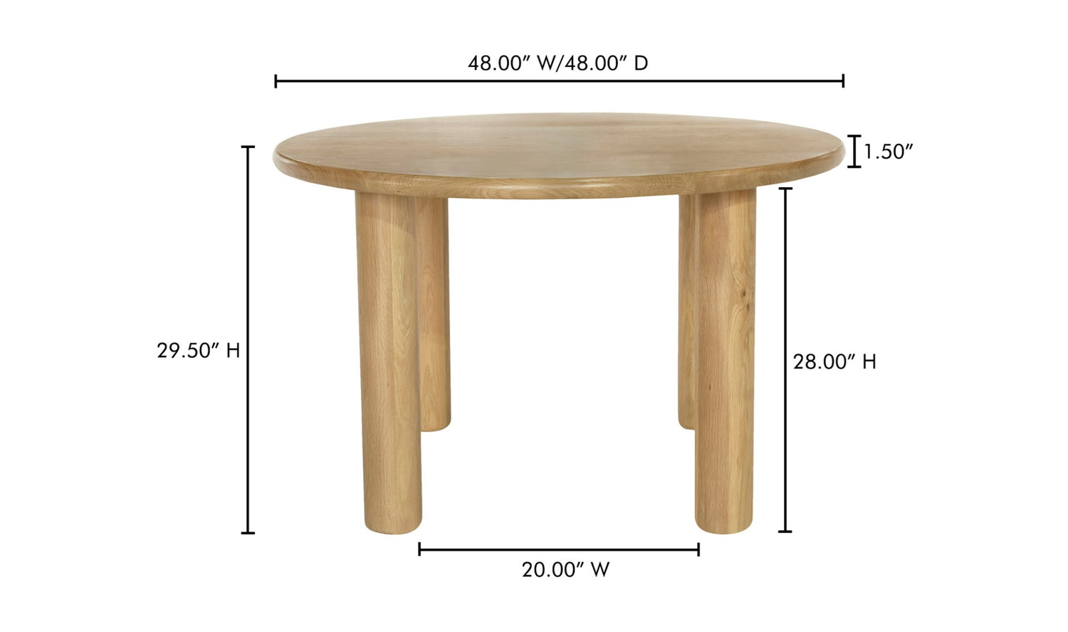 - Rounded-edge tabletop supported by cylindrical legs with tongue & groove joinery