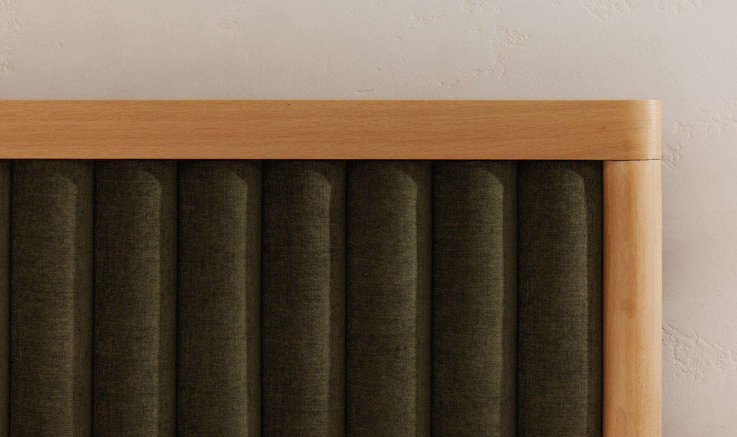 - Channel detail upholstered headboard within an oak veneer frame
