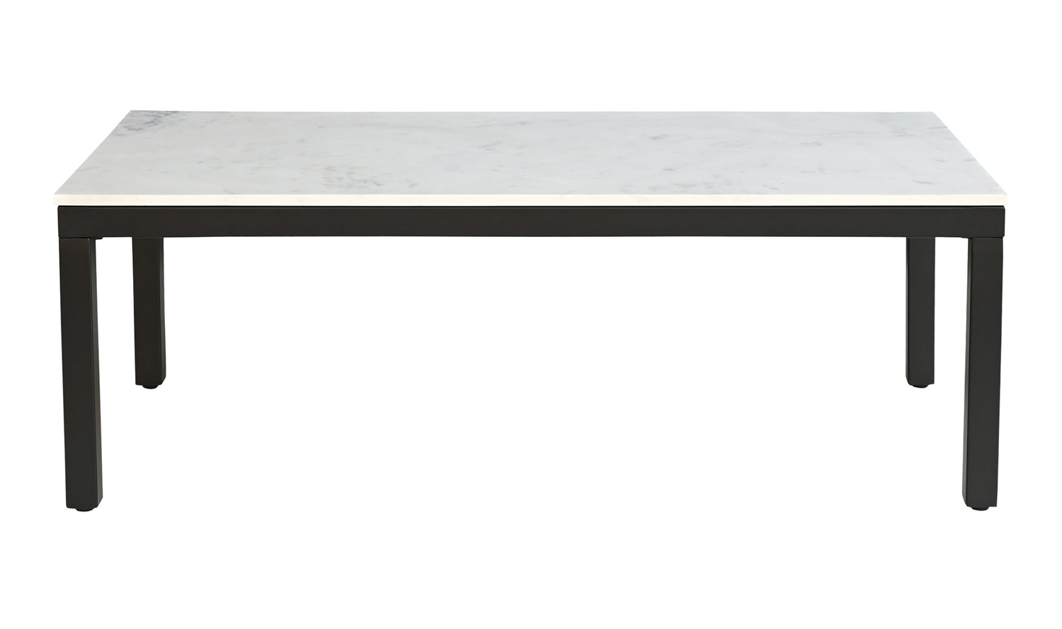 A simple, contemporary design that works in any space, the Parson marble coffee table focuses on mixed material, pairing a natural white Banswara marble top with a sleek black powder-coated iron frame. Whether as an elevated focal point or anchor, the beauty of natural marble takes center stage with each piece’s unique color variation and veining as narrow clean lines promote open space and lightness.