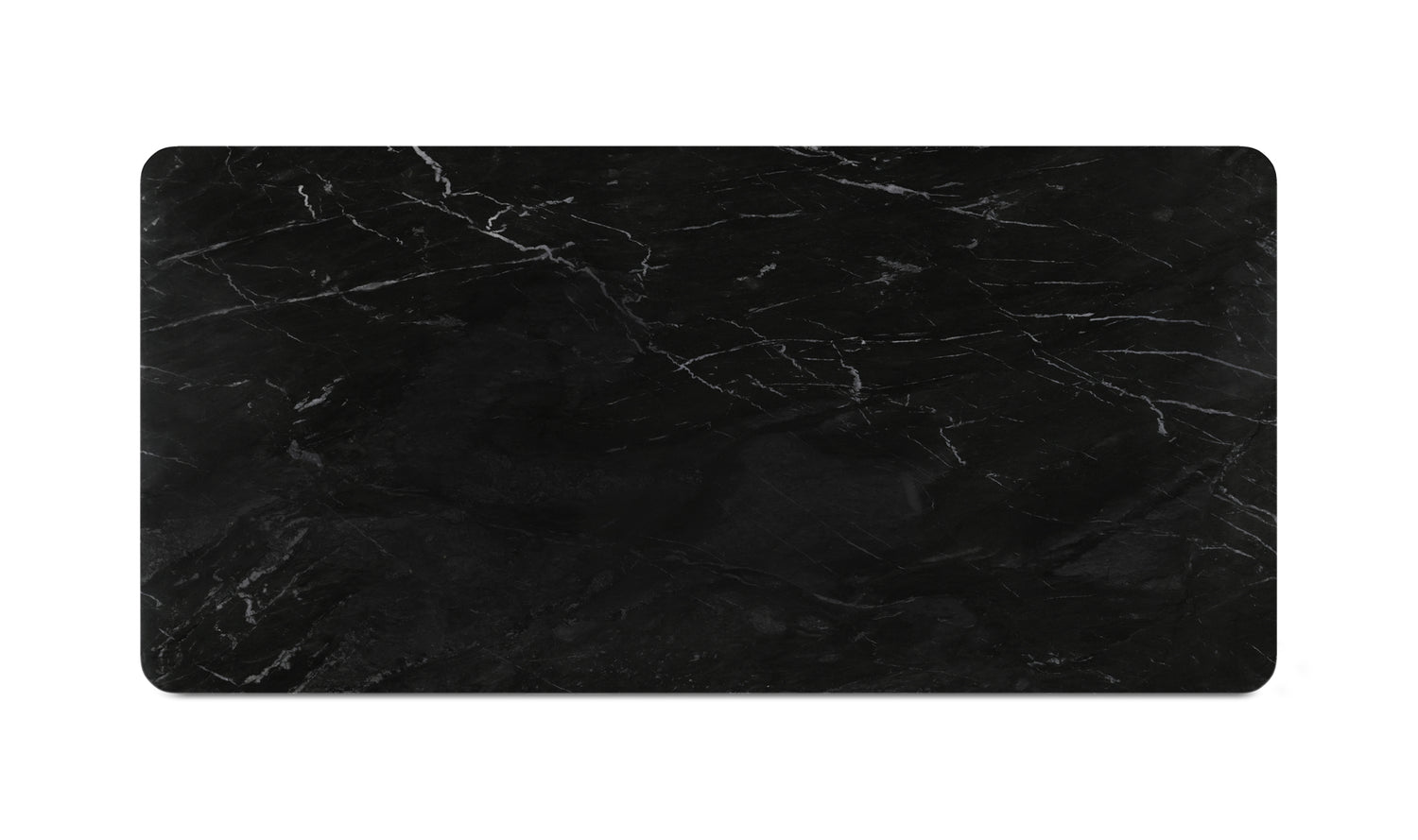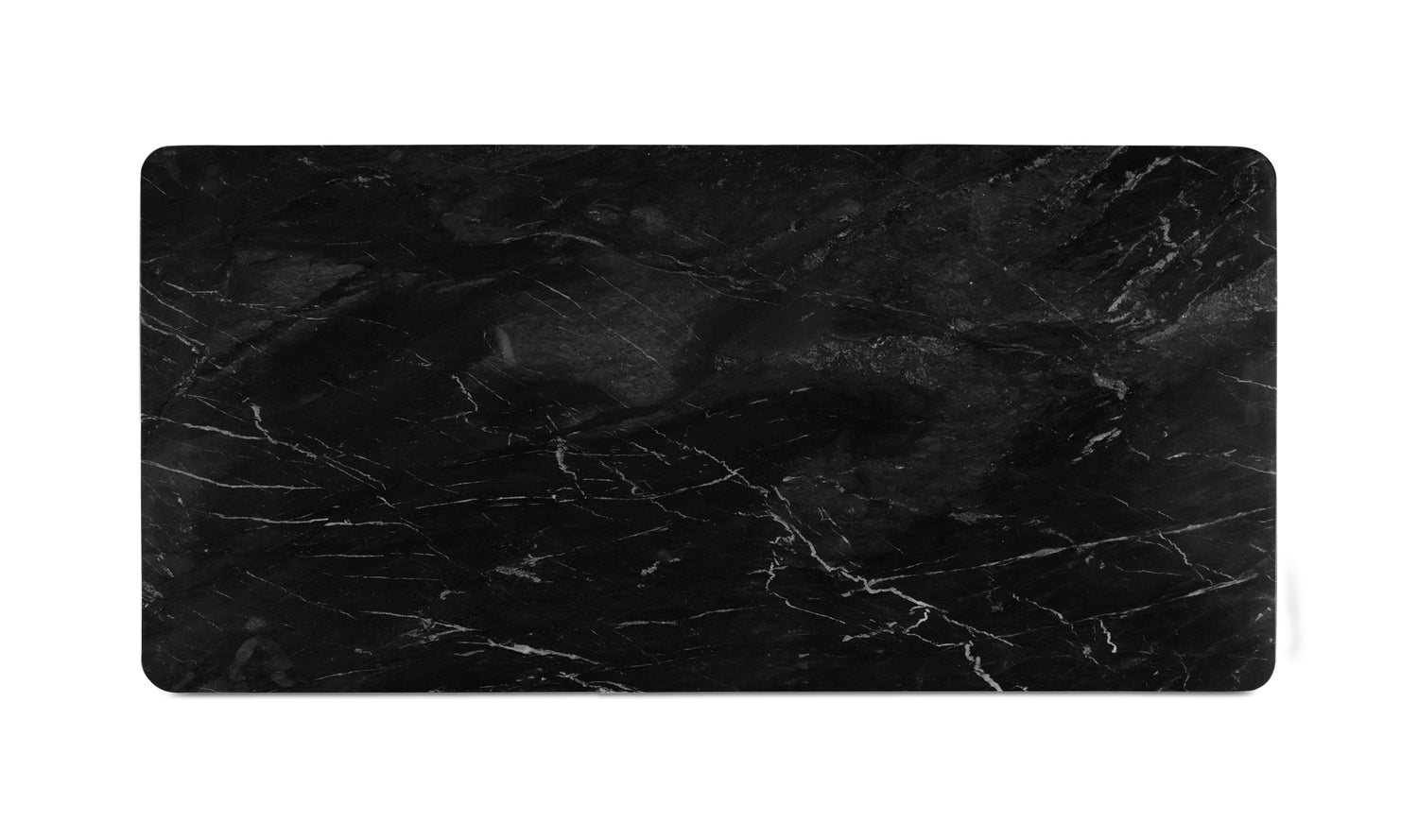 - Black marble with MDF support beneath the tabletop and an iron frame with Acacia wood legs using basic butt joinery